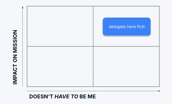 The things you should aim to delegate first are the post-its in the northeast quadrant: high impact on mission, doesn’t have to be you.